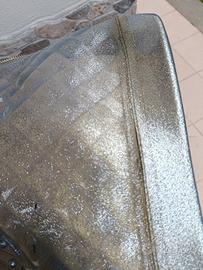 borsa donna in plastica colore bianco trasparente glitterato colore grigio con una sacca cucita artigianalmente facilmente staccabile dettagli in foto
