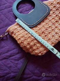 borsa doppio indosso fatta a mano punto prada in cordino thai tessiland color melone. le parti in similpelle marrone comprate su temu. tracolla removibile. mai utilizzata