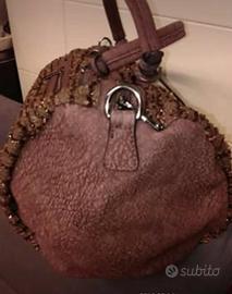 Borsa Dudlin color coffe disegno italiano nuova con cartellino e sacca in tessuto e similpelle scamosciata