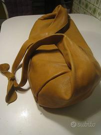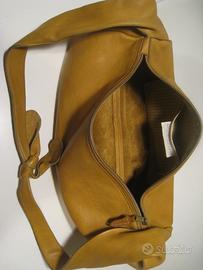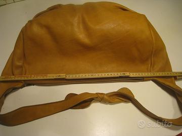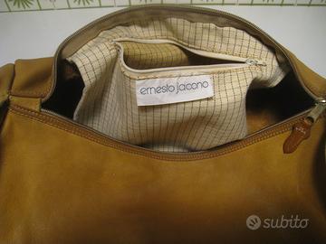 borsa tipo hobo artigianale, made in Italy, marca Ernesto Jacono, in pelle, misura: largh. totale cm. 56, cerniera cm.35, alt.ezza cm. 30. Tasca internacon cerniera.