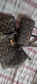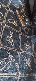 Vendo borsa e portafogli Giulia Pieralli, fondo nero e motivi color beige.