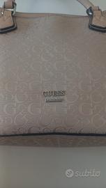 Borsa a spalla e portafogli Guess colore ROSE DUST. Il portafogli presenta dei segni di usura. Borsa sprovvista del ciondolo "Guess" Consegna a mano su Roma.