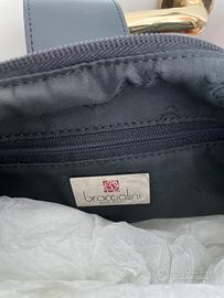 Borsa hobo a spalla (con tracolla) r portafoglio Braccialini in tessuto e prllr miti o pupazzi di neve, completo di charm portachiavi staccabile originale.