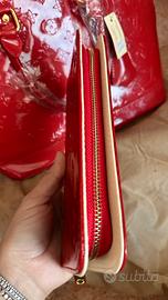 Borsa e portafoglio rosso lucido