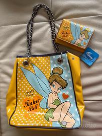 Borsa con manici con catena in metallo e portafoglio abbinato, NUOVO con etichetta e custodia originale della Walt Disney, ideale per regalo.