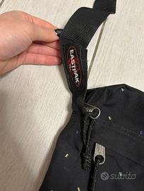 Borsa tracolla eastpak nera con stampa crown multicolor. Compatta ma capiente , con zip e tracolla regolabile.