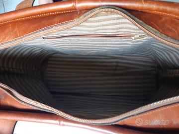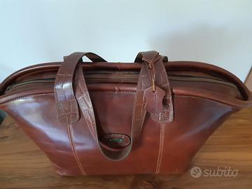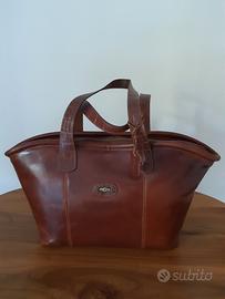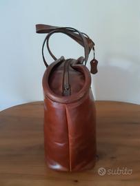 Usata poco, in condizioni perfette. Foderata internamente con tasca. Misure base 38 cm, apertura 52 cm, altezza 30 cm.