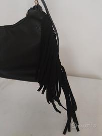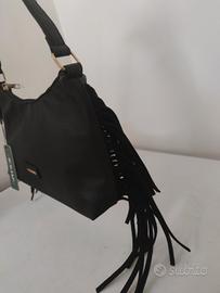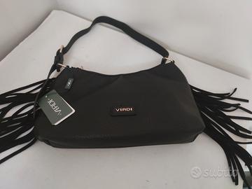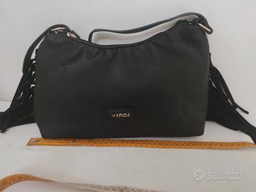 Elegante borsa a spalla VERDE, perfetta per completare ogni outfit. - Materiale: ecopelle martellata - Dettagli con frange - Chiusura con zip - Logo VERDE sul fronte