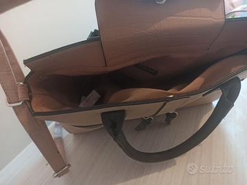 Materiale effetto pelle coccodrillo, molto capiente e strutturata.