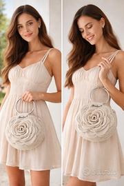 Borsa a mano rotonda in tessuto lavorato con decorazione floreale in rilievo. Colore beige neutro, perfetta per outfit eleganti, cerimonie o look casual chic. 👜 Manico rigido in metallo argentato 🌹 Dettaglio rosa centrale in rilievo 🎀 Stile romantico e raffinato 📏 Formato compatto, ideale per occasioni speciali.borsa tonda, borsa beige, borsa elegante, clutch floreale, borsa cerimonia, borsa romantica, borsa vintage, borsa con anello, mini bag, handbag donna, borsa particolare # Hashtag #borsadonna #borsaelegante #vintagebag #borsabeige #clutchbag #romanticstyle #cerimonia #accessorimoda #tondabag #vinteditalia