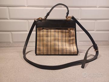 Si propone in vendita una borsa della marca Parfois in buonissime condizioni. Dimensioni circa: larghezza 27 cm x altezza 23 cm x 12 di profondità. Si evidenzia soltanto, come si evince dalle fotografie, alcuni punti in cui l'ottone risulta leggermente ossidato.