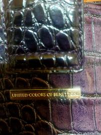 Bella borsa elegante e capiente di pelle verniciata viola, brand United Colors of Benetton. Lunghezza 39 cm, altezza 22 cm