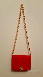 Borsa rossa elegante con catena dorata.