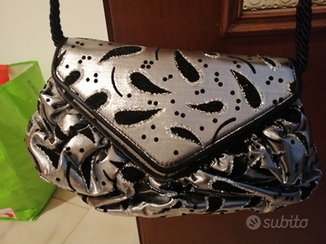 Vendo borsa in tessuto, color argento e nero, molto fashion e particolare