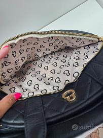 Vendo borsa marca Elisendra, modello Megane Matelassè, colore nero, vera pelle, usata ma in ottime condizioni estetiche, piedini sotto un po' usurati. Molto capiente. Tracolla lunga in dotazione per portarla sia a mano che a tracolla.