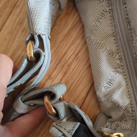 Borsa Emporio Armani in tela grigio perla con inserti pelle stampa cocco