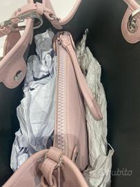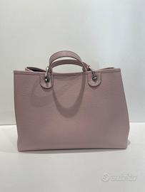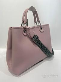 Shopping Emporio Armani rosa ortensia con tracolla al contrasto verde salvia. In ottime condizioni. Piccolissimo difetto come in foto sugli angoletti. 38x27x13cm.