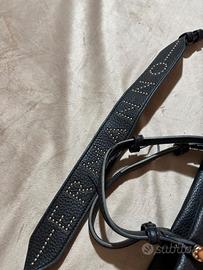 • Design: Logo "ERMANNO FIRENZE" frontale in lettere dorate e iconica tracolla personalizzata con scritte e borchie piatte.