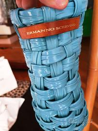 Vendo Borsa di ERMANNO SCERVINO originale, in vernice intrecciata color Blu Corallo, con manici e piccolo portafoglio in pelle.