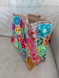 Borsa estiva decorata completamente a mano all'uncinetto.