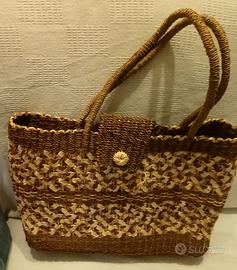 Borsa estiva elegante nuova in paglia e bambù, larghezza cm 40, altezza cm 30, ritiro Milano zona san siro