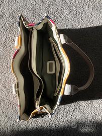 FURLA, borsa a mano da donna realizzata in robusto tessuto colorato e manici in pelle.