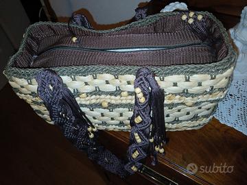Borsa estiva donna sportiva ma allo stesso tempo molto delicata da usare anche in abbinata a scarpe con tacco. In paglia, color marrone. Misure come da foto.