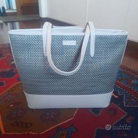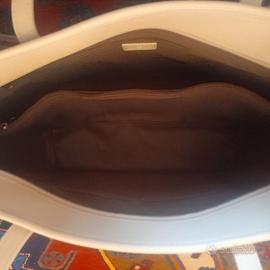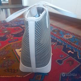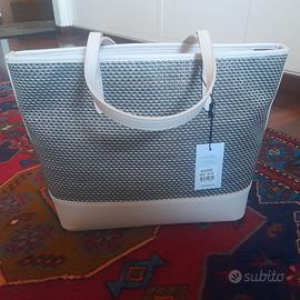 Una borsa molto grande per mettere dentro di tutto Bianco panna con intarsi grigio antracite Dimensioni circa 40x30