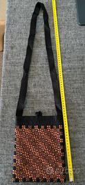 Tracolla in tessuto lucido Parte frontale completamente ricamata con micro specchietti Chiusura con asola, tracolla lunga