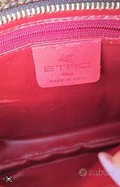 Borsa ETRO Vintage originale, in perfette condizioni esterne, ma la fodera interna si sta tutta spellando, quindi va sostituita o ripulita (perciò ho abbassato prezzo)! È In ecopelle marrone con classica stampa cashmere, inserti in camoscio nei toni arancio e finiture in pelle cuoio naturale. Borsetta da portare a mano o sottobraccio, fornita con sacca originale antipolvere.