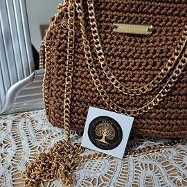 borsa falabella interamente realizzata a mano in cordino color marrone