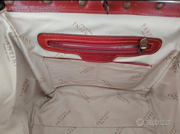 Borsa made in Italy in pelle colore rosso apertura stile porta monete in ottone interno fodera