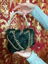 borsa fatta a mano con aggiunta di manico brillantinato e catenella
