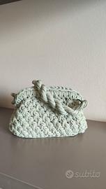 Borsa realizzata a mano all’uncinetto con fettuccina di qualità.