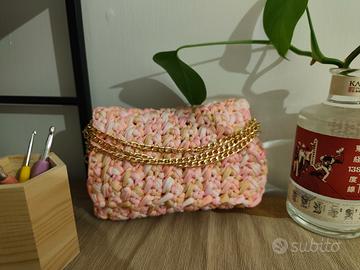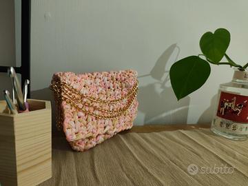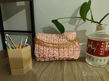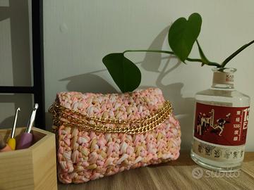 borsa lavorata a mano con catenella e decoro . sia per tutti i giorni che per occasioni speciali colori in varie tonalità di rosa
