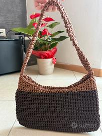 Vendo splendida borsa realizzata a mano all’uncinetto, modello a spalla, in elegante combinazione bicolore .