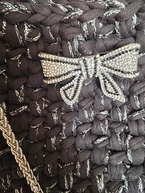 Borsa fatta a nano ad uncinetto con lurex argento