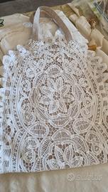 Borsa sacchetto in pizzo di lino