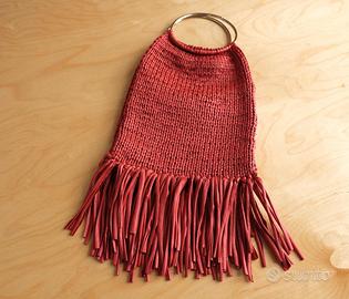 Borsa fatta a mano filato ecopelle Larghezza 23 cm Lunghezza dai manici alla frangia 50 cm Colore Borgogna