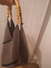borsa realizzata a mano ad uncinetto, con manici in bambù.