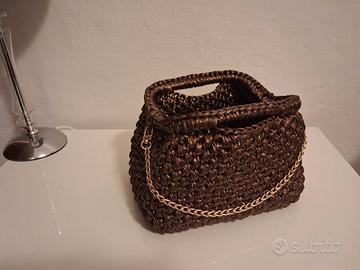 NUOVA borsa fatta a mano con uncinetto in fettuccia lucida con tracolla abbinata :