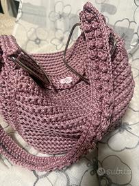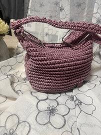 Borsa fatta a mano da pirtare a mano o a tracolla. Misura 20 x 23 profonda 12 cm. Molto capiente perche morbida. Realizzata in cordino thai manici metallo.