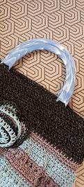 Borsa fatta interamente a mano ad uncinetto con cordino lame' 3 colori,fondo tondo .