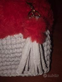 Bellissima ed elegante borsa realizzata completamente a mano... Color bianco/rosso Manici in acciaio color oro con portachiavi abbinato...