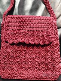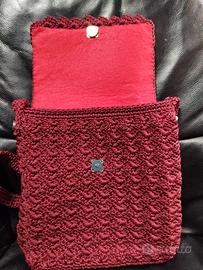 Borsa fatta a mano con cordino bordeaux, chiusura con bottone magnetico, fodera in feltro. Nuova