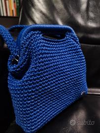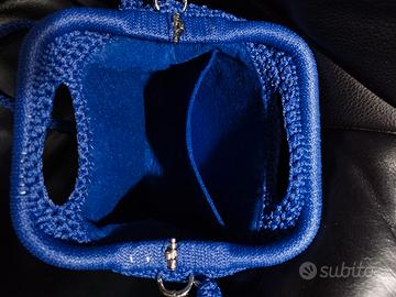 Borsa fatta a mano in cordino blu scuro, fodera interna in feltro, chiusura con clutch. Nuova