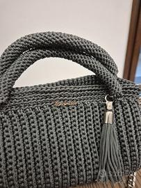 Borsa fatta a uncinetto Cordino lavorato a punto nocciolino foma di bauletto Manici e tracolla Chiusura magnetica