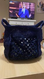 Borsa fatto a mano all uncinetto, blu navy. Misure 50 x 25 h. 40