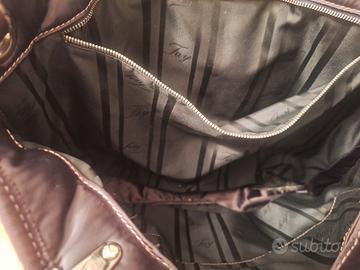 Borsa Fay marrone con manici in pelle e tracolla , tessuto tecnico