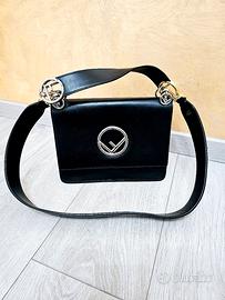 Borsa Fendi modello Kan I shoulder bag in pelle nera con doppia tracolla, una corta e una lunga, con dettagli in metallo dorato e argentato. La borsa si presenta in perfette condizioni, come nuova. Non presenta segni evidenti d'usura e gli angoli sono perfetti. Usata un paio di volte. Compresa di scontrino originale d'acquisto, fattura e dust bag.